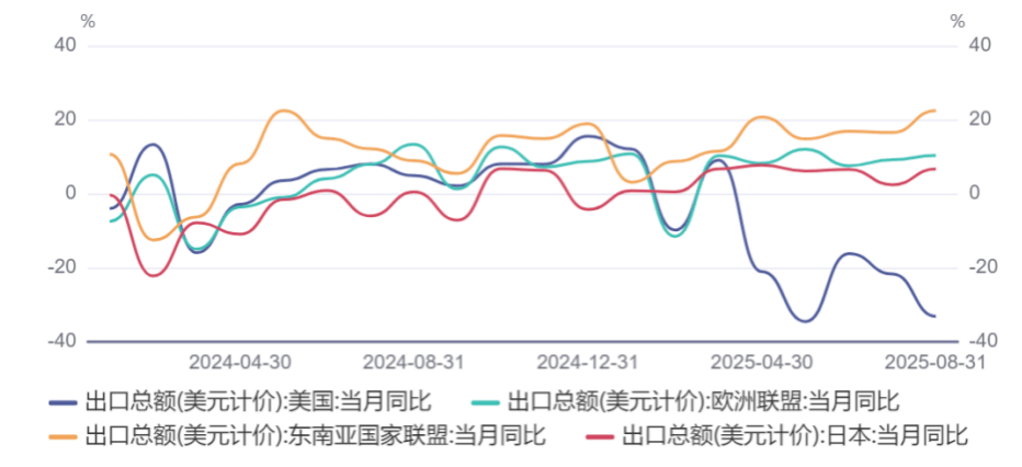 (3)出口:8月份出口和进口同比增速均回落,对美国出口同比降幅扩大至-33%