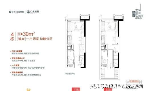 保利金沙大都汇公寓产品采用约4.5米层高的复式结构,上下层由楼梯连接,实现起居空间与休息空间分离,提高空间合理性。部分户型采用双钥匙结构,即通过独立出入口实现上下层分别使用,对商务长期驻点人员、工作室需求者或租客分层使用提供可能性。