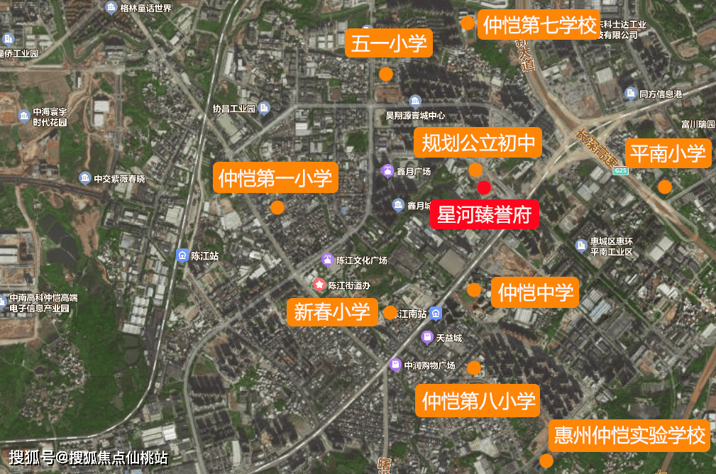 项目直线公里范围内汇聚天益城,欢乐海湾、五一新天地、仲恺中学、仲恺八小、仲恺实验学校、惠州市中心人民医院 (仲恺分院)、仲恺体育馆、陈江文化广场等优渥配套,尽享中心便捷生活圈。