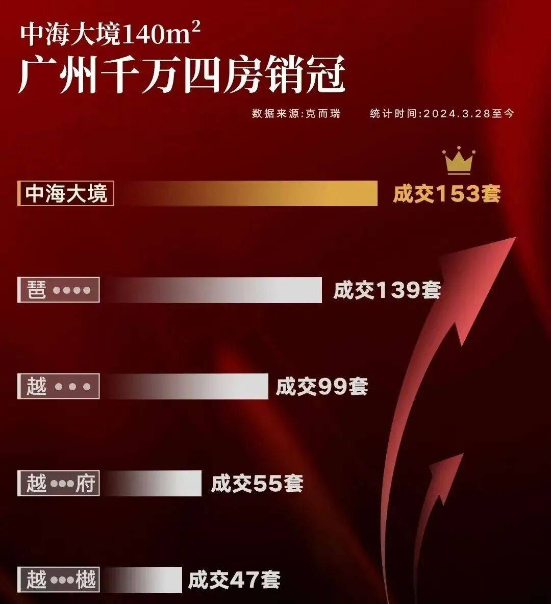 2024年4月以来,项目主打约160-200平户型,狂成交金额、销量和面积均是NO.1,斩获广州豪宅“三冠王”。