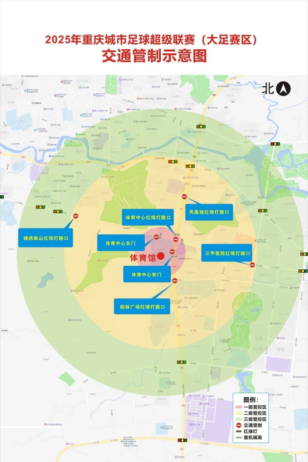 实施交通管制期间,一级管控区禁止所有车辆通行(应急车辆除外),在车流过大时将在二级管控区、三级管控区启动分流管控措施,请广大驾驶人员按照现场交通执勤人员指挥下通行。